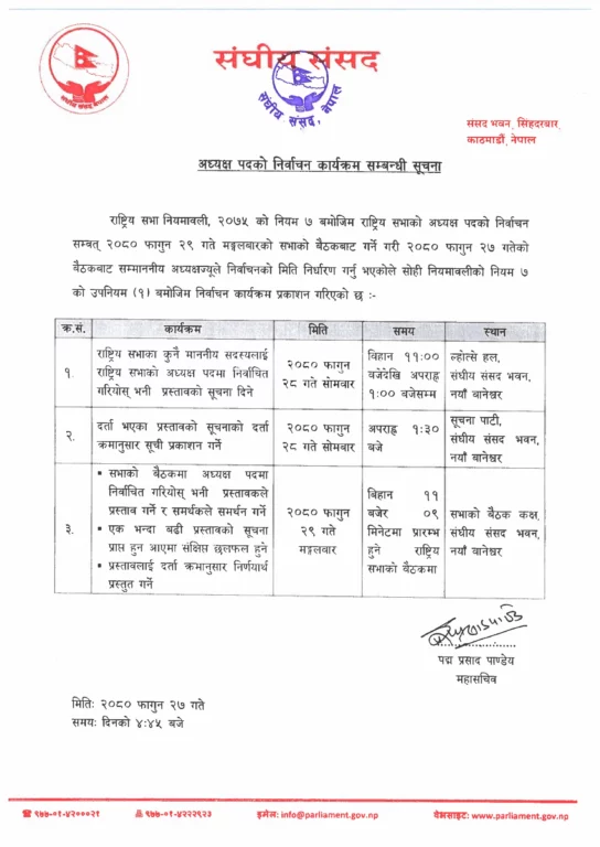 राष्ट्रियसभा अध्यक्षको निर्वाचन आज, यस्तो छ सम्भावित कार्यसूची