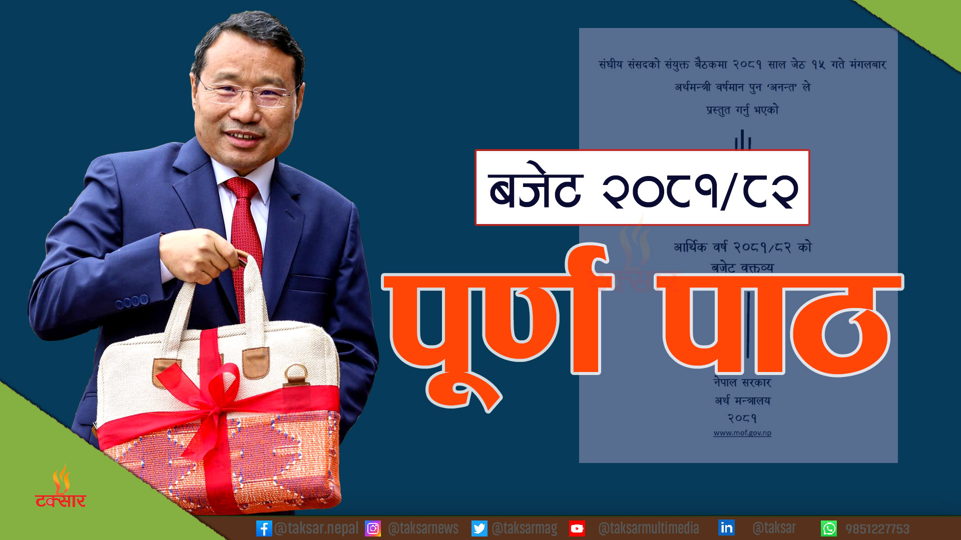 आगामी आर्थिक वर्षको लागि १८ खर्ब ६० अर्बको बजेट (पूर्णपाठ) प्रकाशित मिति : 28 May, 2024 5:27 pm लुम्बिनी सञ्चार बजेट__२०८१_जेठ_१५_गते_11_finalDownload