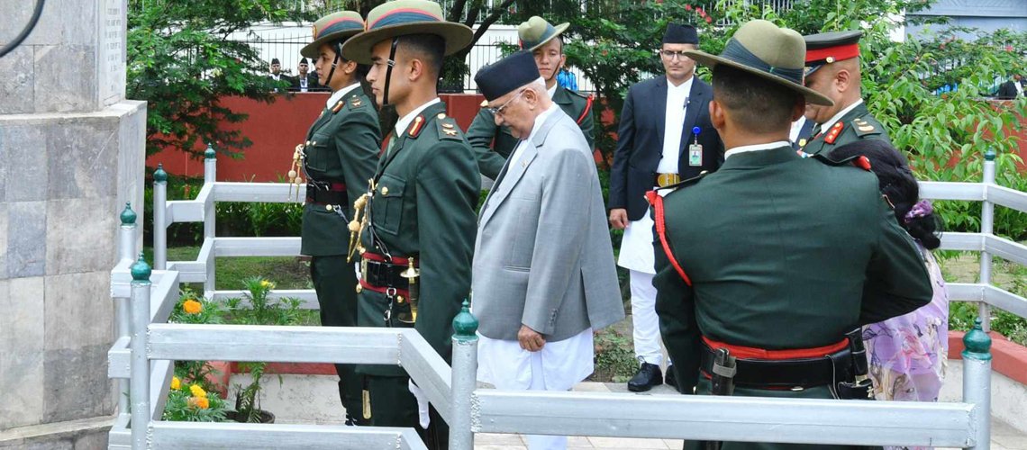 प्रधानमन्त्री ओलीद्वारा लैनचौरस्थित शहीदको शालिकमा माल्यार्पण