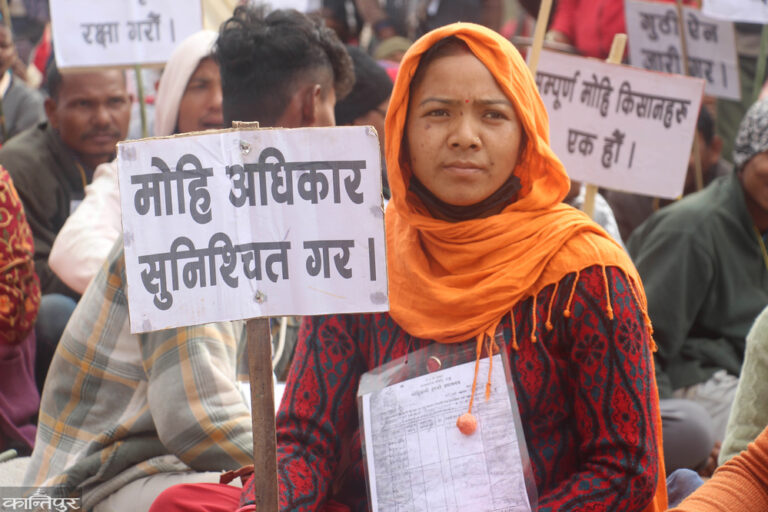 दाङ । स्वर्गद्वारी गुठीको जग्गामा आफ्नो कानुनी अधिकार माग गर्दै मोही किसानहरू सडकमा उत्रिएका छन् । माघ २० गतेदेखि काठमाडौँको माइतीघर मण्डलमा अनिश्चितकालीन धर्ना दिइरहेका किसानहरूको समर्थनमा आइतबार घोराहीका किसानहरूले लाठी बोकेर प्रदर्शन गरेका हुन् ।