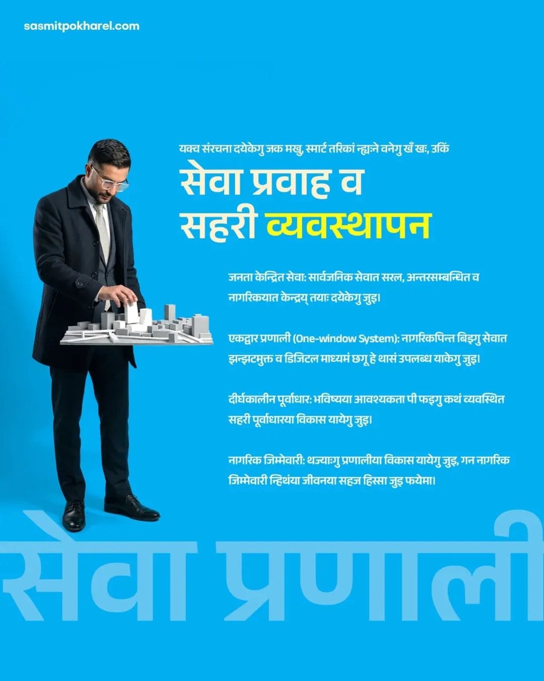 काठमाडाैँ । राष्ट्रिय स्वतन्त्र पार्टी (रास्वपा) का काठमाडौँ क्षेत्र नम्बर ५ का उम्मेदवार सस्मित पोखरेलले नेपाली,अङ्ग्रेजी साथसाथै नेवारी भाषामा पनि आफ्नो प्रतिवद्धतापत्र सार्वजनिक गरेका छन् ।