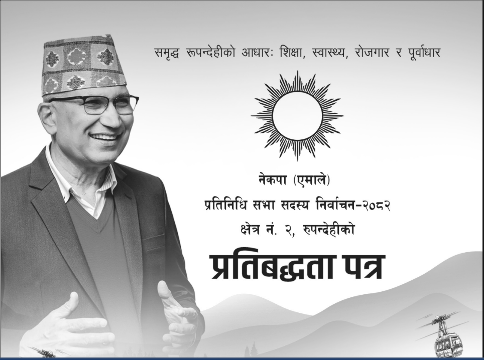 काठमाडाैँ । पूर्वअर्थमन्त्री विष्णु पौडेलले आफ्नो निर्वाचन क्षेत्र रुपन्देही २ का लागि घोषणा पत्र सार्वजनिक गर्दै सिद्धार्थ राजमार्गको बुटवल–पोखरा खण्डलाई द्रूत मार्गमा स्तरोन्नति गर्ने प्रतिबद्धता जनाएका छन् ।
