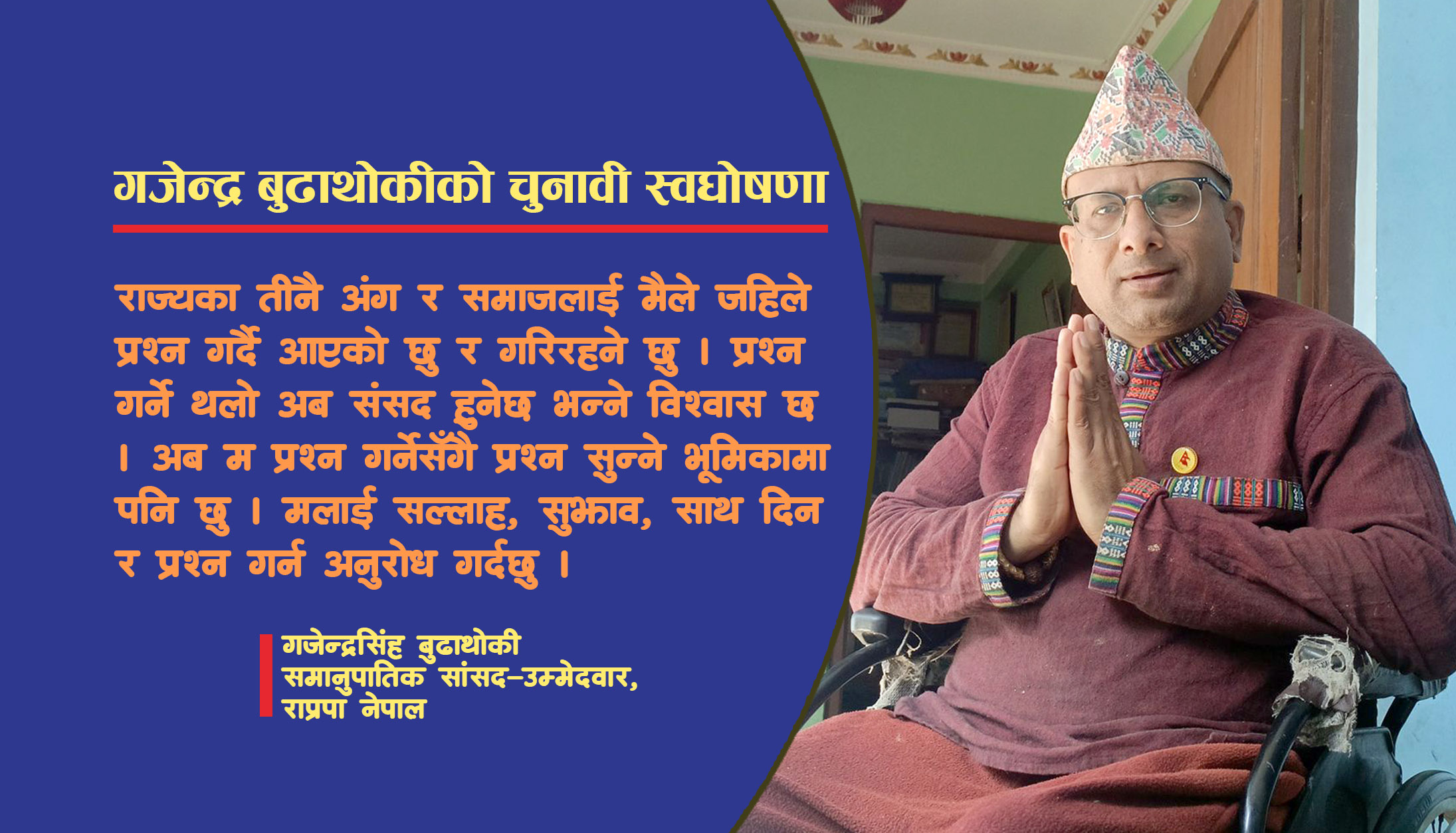आगामी निर्वाचनकाे सन्दर्भमा म गजेन्द्र बुढाथाेकीकाे स्वघाेषणा