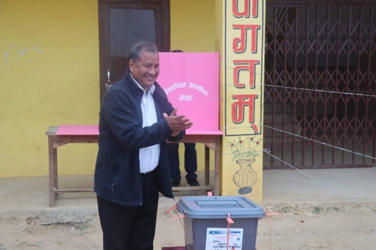 रोल्पा । नेकपा(माओवादी)का महासचिव नेत्रबिक्रम चन्द ‘विप्लव’ले मतदान गरेका छन् ।