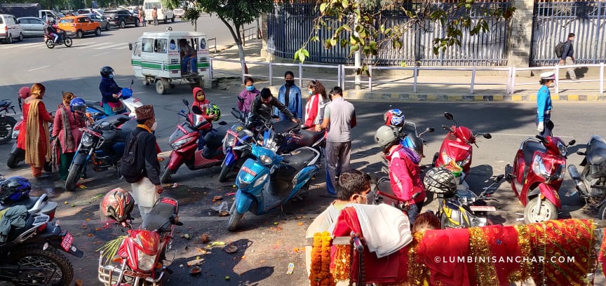 सवारी साधनको पूजाका लागि काठमाडौंको सहिदगेट नजिकै रहेको भद्रकाली मन्दिरमा भिड लागेको छ । आ-आफ्ना सवारी सधानको पूजाका लागि मन्दिरमा लागेको भीड :