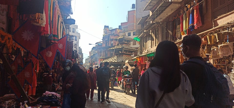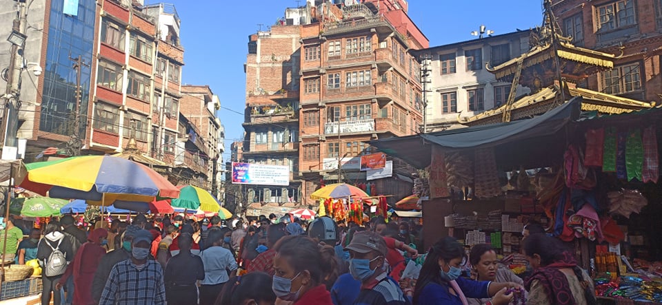 काठमाडौंको असन बजारमा कोरोना बिर्साउने तिहारको चहलपहल (फोटो फिचर )