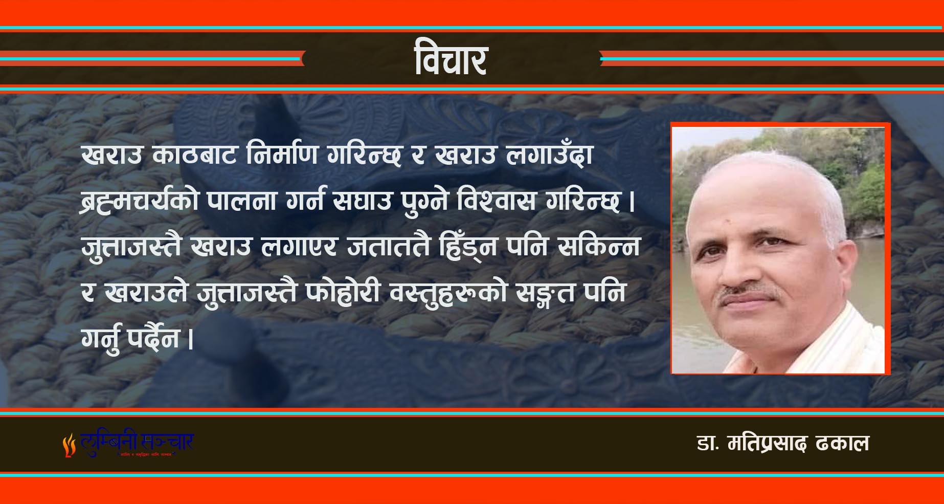 यति विशाल संसारको कुनै कुनामा जुत्ताको पनि पूजा हुन्छ होला तर हामी त्यसबारेमा अझसम्म अनभिज्ञ छौँ । जुत्ताको पूजा भइरहने ठाउँका बारेमा हामी बेखबर भए पनि खराउको पूजा गरिएको कथा भने हामीहरू धेरैले सुनेका र पढेका पनि छौँ । राजाका रूपमा राज्याभिषेक हुन लागेका राम वनवास जानुपर्ने अवस्था र भरतले राज्य सञ्चालन गर्नुपर्ने बाध्यता आइपरेपछि भरतले रामका खराउलाई राजसिंहासनमा राखेर पूजा गरी आफू निमित्तमात्र भएर राज्यसञ्चालन गरेका थिए ।