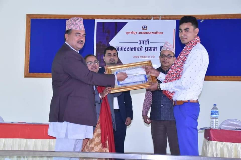 आठौं नगरसभाले पारित गरेको लोगो तुल्सिपुर उपमहानगरपालिका वार्ड नम्बर १५ निवासी प्रेमराज चौधरीले बनाएका हुन्।