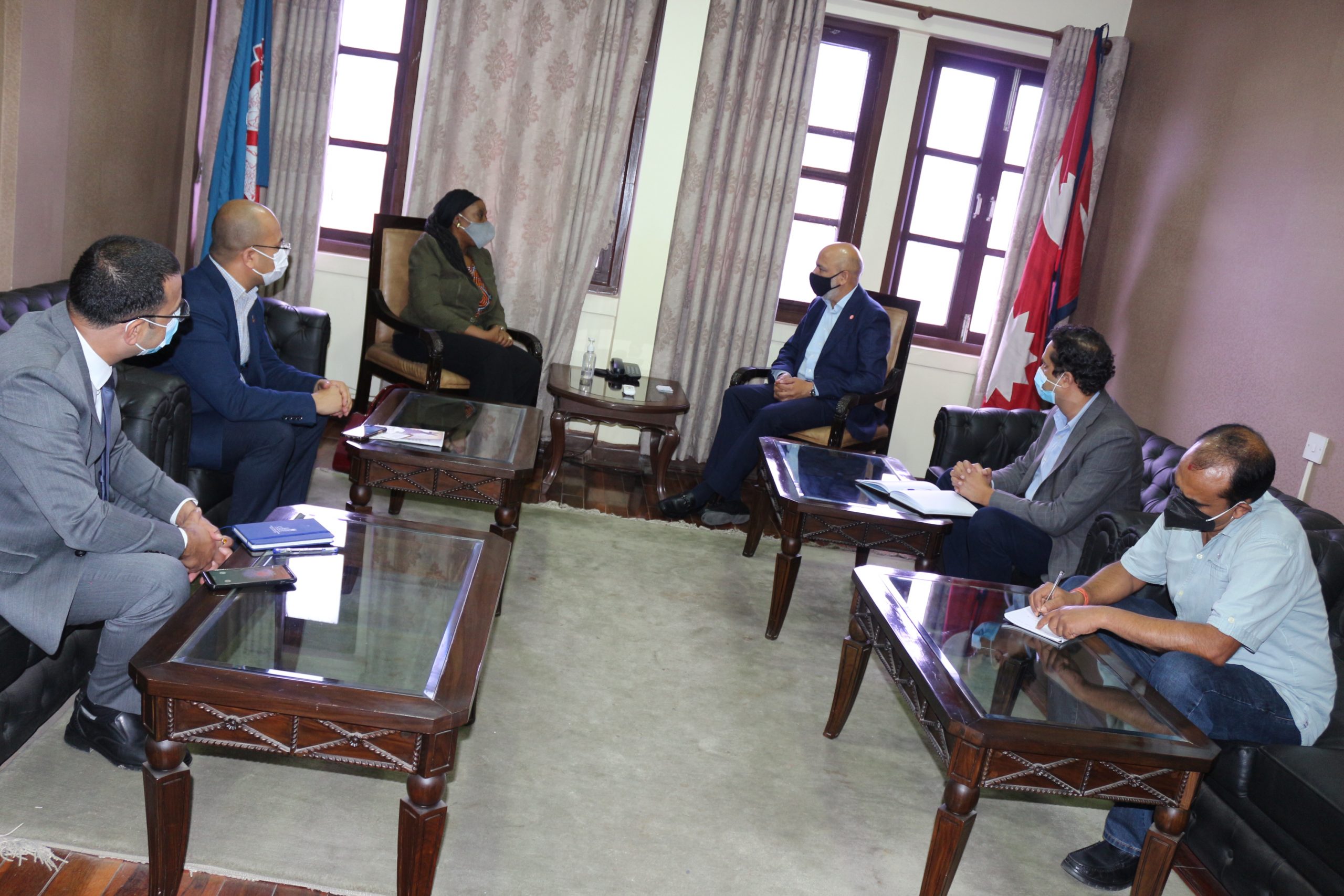 बुधबार भएको भेटवार्तामा संयुक्त राष्ट्र संघको दिगो विकासका लक्ष्यहरूलाई पुरा गर्न संयुक्त राष्ट्र संघ र महासंघबीच सहकार्य, नेपाल अतिकम बिकसित मुलुकबाट स्तरोन्नति हुदा आइपर्ने चुनौति सामना गर्न निजी क्षेत्रको भूमिका एवं कोभिडबाट अर्थतन्त्रमा परेको असर न्युनिकरणका लागि संयुक्त प्रयास गर्ने लगायतका विषयमा छलफल भएको हो ।