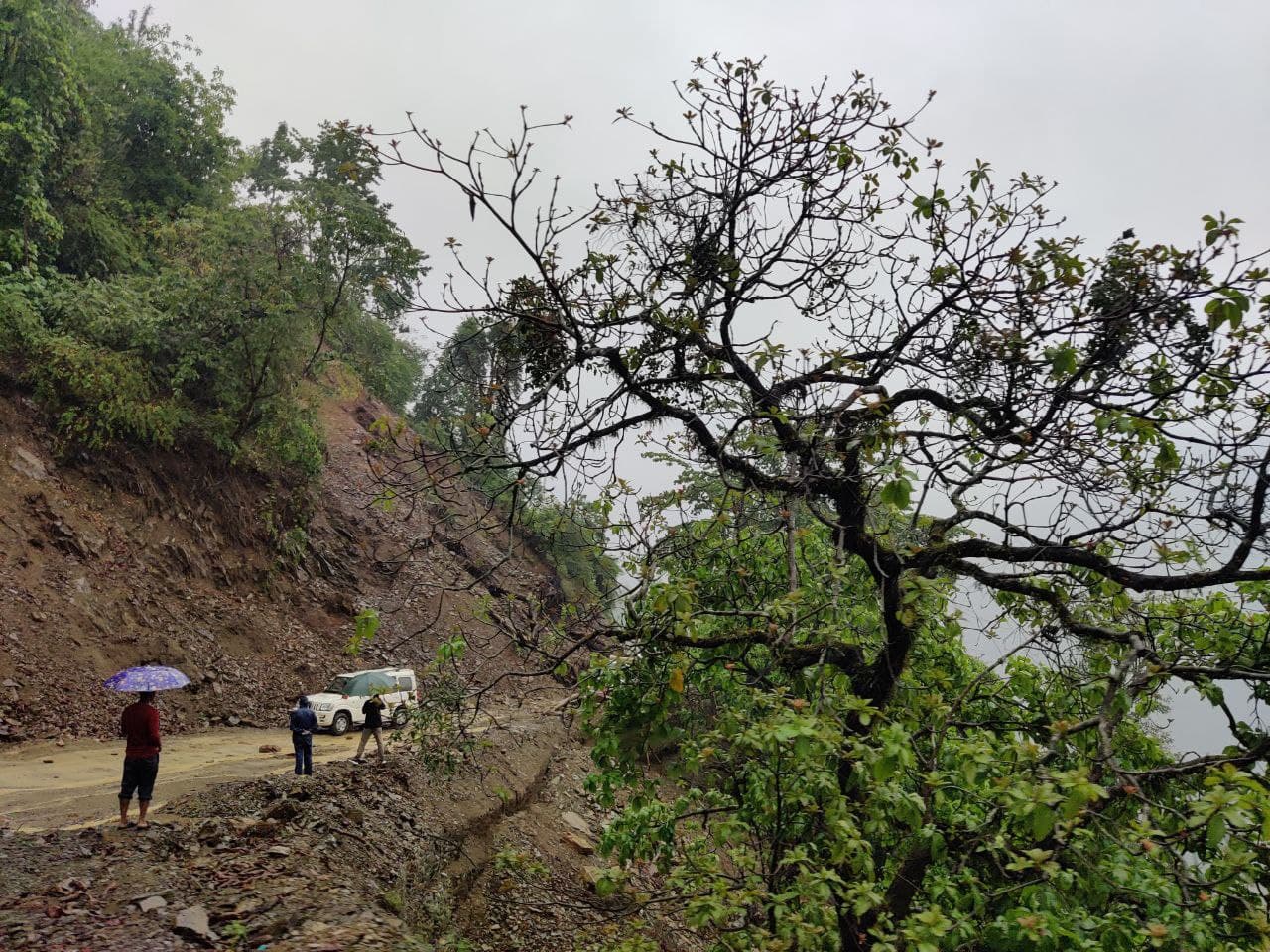 अविरल वर्षाले भालुवाङ-प्यूठान सडक खण्डको विभिन्न ठाउँमा क्षति, अवागमन प्रभावित