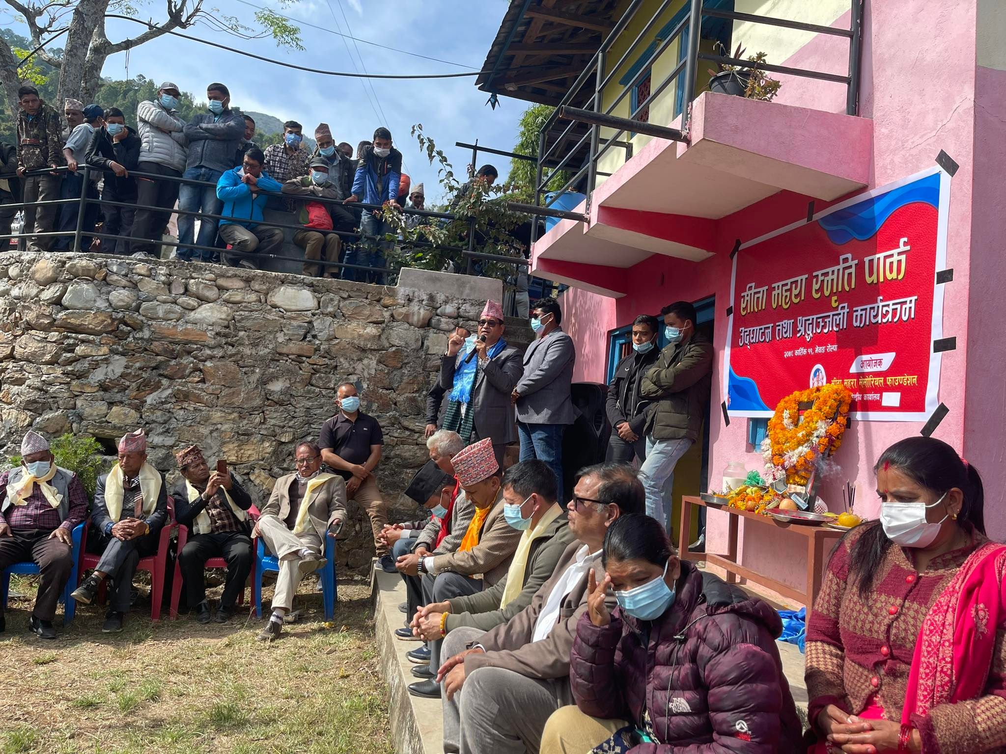 कार्यक्रममा फाउन्डेसनका संरक्षक कृष्ण बहादुर महराले स्वर्गीय सीता महराको तस्बिर अनावरण गरे । पार्क महराकाे निवाससँगै जाेडिएकाे।