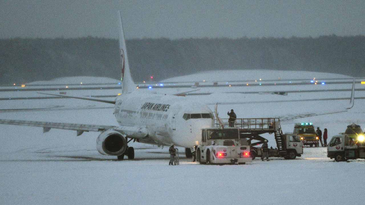 जापानी प्रसारक एनएचकेका अनुसार निप्पोन एयरवेजका ६९ र जापान एयरलाइन्सका ३५ र पीच एभिएसनका २ उडान रद्द भएका छन् । आइतबार बिहानसम्म विभिन्न प्रान्तमा ३५ इन्चसम्म हिउँ परेको मौसमविद्ले बताएका छन् । देशको पश्चिमी भूभागमा चिसो बढेसँगै भारी हिमपात जारी रहने अनुमान गरिएको छ ।
