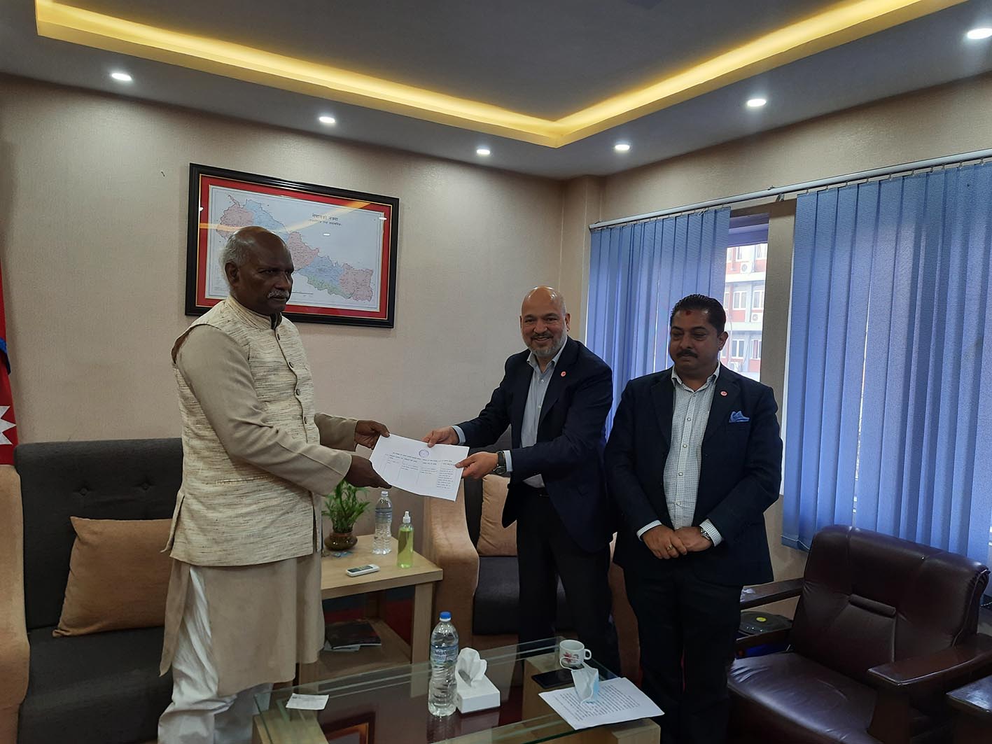 महासंघ अध्यक्ष शेखर गोल्छा नेतृत्वको प्रतिनिधिमण्डलले कृषि तथा पशुपंक्षी विकास मन्त्री महिन्द्र राय यादवलाई भेटेर निजी क्षेत्रको तर्फबाट सुझाव पेश गरेको हो । कृषि सचिव डा. गोविन्द प्रसाद शर्मासमेतका मन्त्रालयका अधिकारीहरुको उपस्थितिमा सुझाव पेश गरिएको हो ।