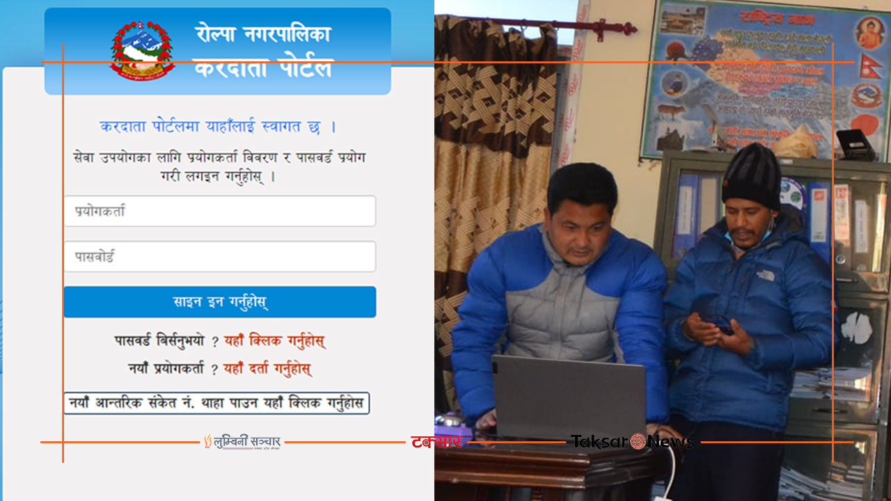 “अब नगरपालिकामा पुगेर दाखिल गर्नुपर्ने सम्पत्ति कर, बाहल कर र व्यवसाय कर लगायतका कर घरमै बसेर इन्टरनेटबाट तिर्न सकिनेछ,” नगरपालिकाका आईटी अफिसर निशान आचार्यले लुम्बिनीसञ्चारसँग भने, “रोल्पा नगरपालिकाको वेभसाइटमा गई इसर्भिस सेवामा गएर यो सुविधा लिन सकेछ।”