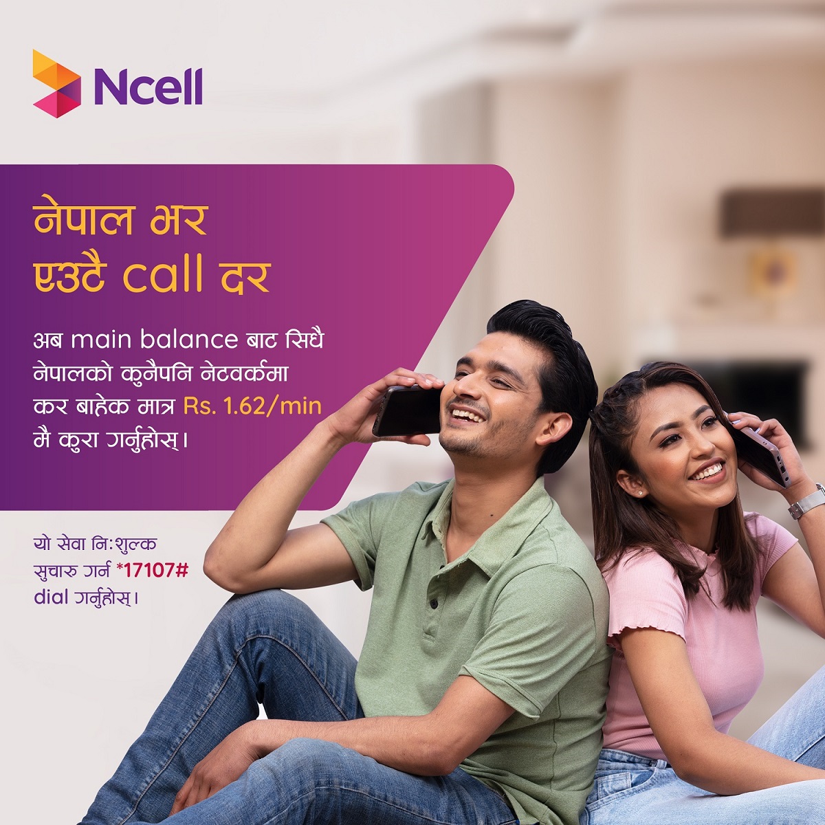 काठमाडौं । एनसेल आजियाटा लिमिटेडले नेपालका जुनसुकै दुरसञ्चार सेवा प्रदायकको नेटवर्कमा कल गर्दा लाग्ने शुल्क घटाएको छ ।