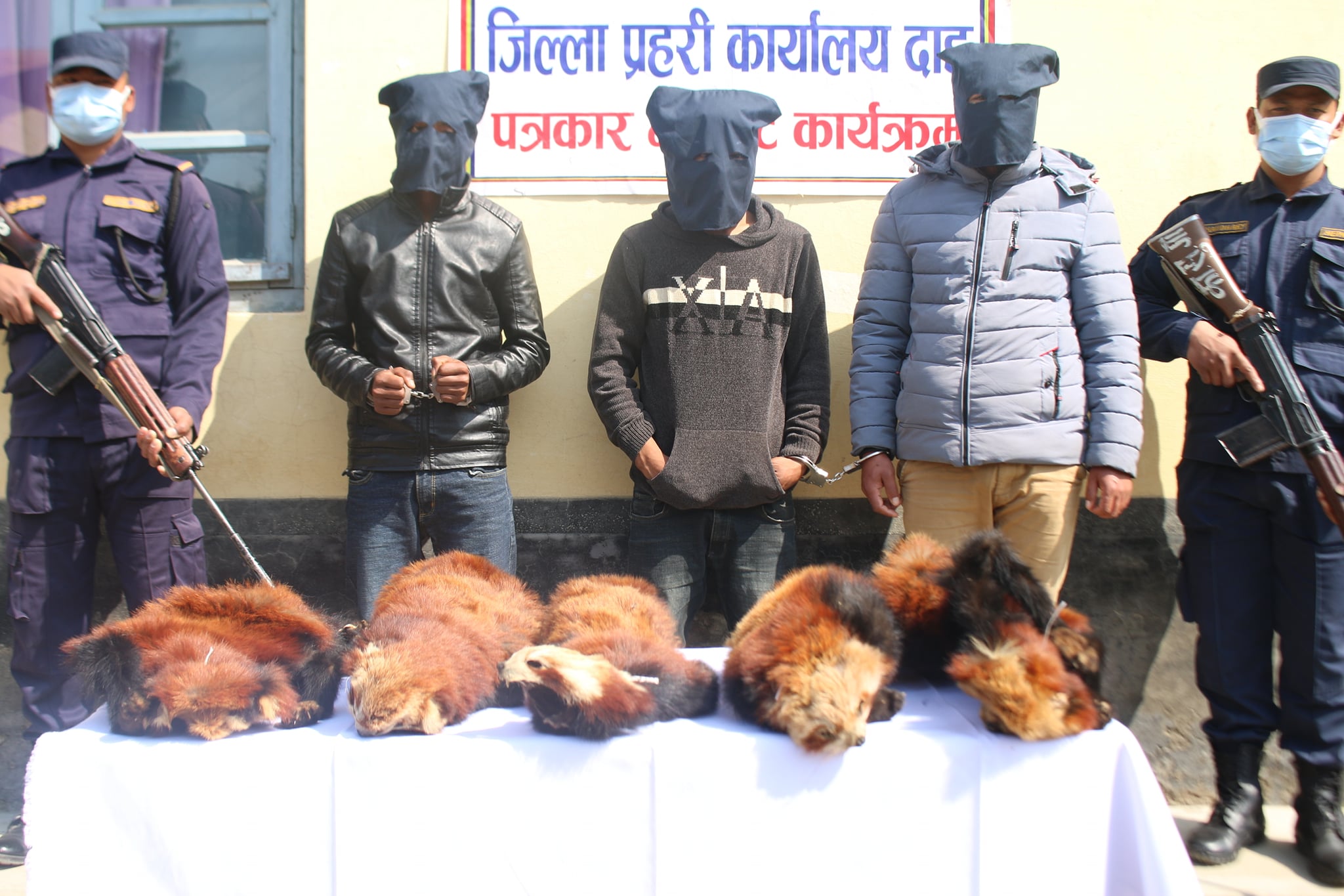 उनीहरू भालुवाङ–प्यूठान सडक खण्डमा चेकजाँच गर्ने क्रममा पक्राउ परेका हुन् । उनीहरूको साथबाट प्रतिबन्धित दुर्लभ बन्यजन्तु रेडपाण्डाको छाला जस्तो देखिने छाला ५ थान बरामद गरिएको जिल्ला प्रहरी दाङले जनाएको छ ।