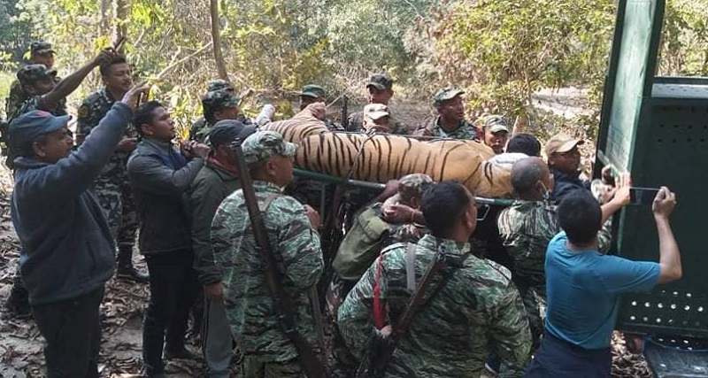 बाँकेको नरभक्षी बाघ चितवन ल्याइयो