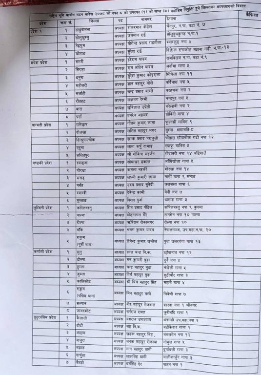 थप ४३ जिल्लामा राष्ट्रिय भूमि आयोगका अध्यक्ष नियुक्त