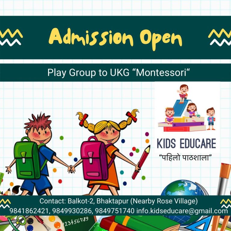 भक्तपुर । भक्तपुरको बालकोटमा शिक्षण पेशामा लामो समयदेखि संलग्न चार जना नारीले किड्स ऐडुुकेयर मन्टेश्वरी सञ्चालनमा ल्याएका छन् । आफ्नो घर सम्हाल्दै, छोरा छोरी हुर्काउँदै फरक फरक विद्यालयहरुमा अध्यापन गर्दै आएका चारै जनाले सामूहिक लगानीमा आफ्नै मन्टेश्वरी विद्यालय सञ्चालनमा ल्याएका हुन्।