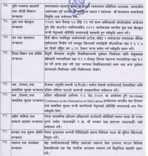 २० राष्ट्रमा नेपाली राजदूत नियुक्त गर्ने मन्त्रिपरिषद्को निर्णय