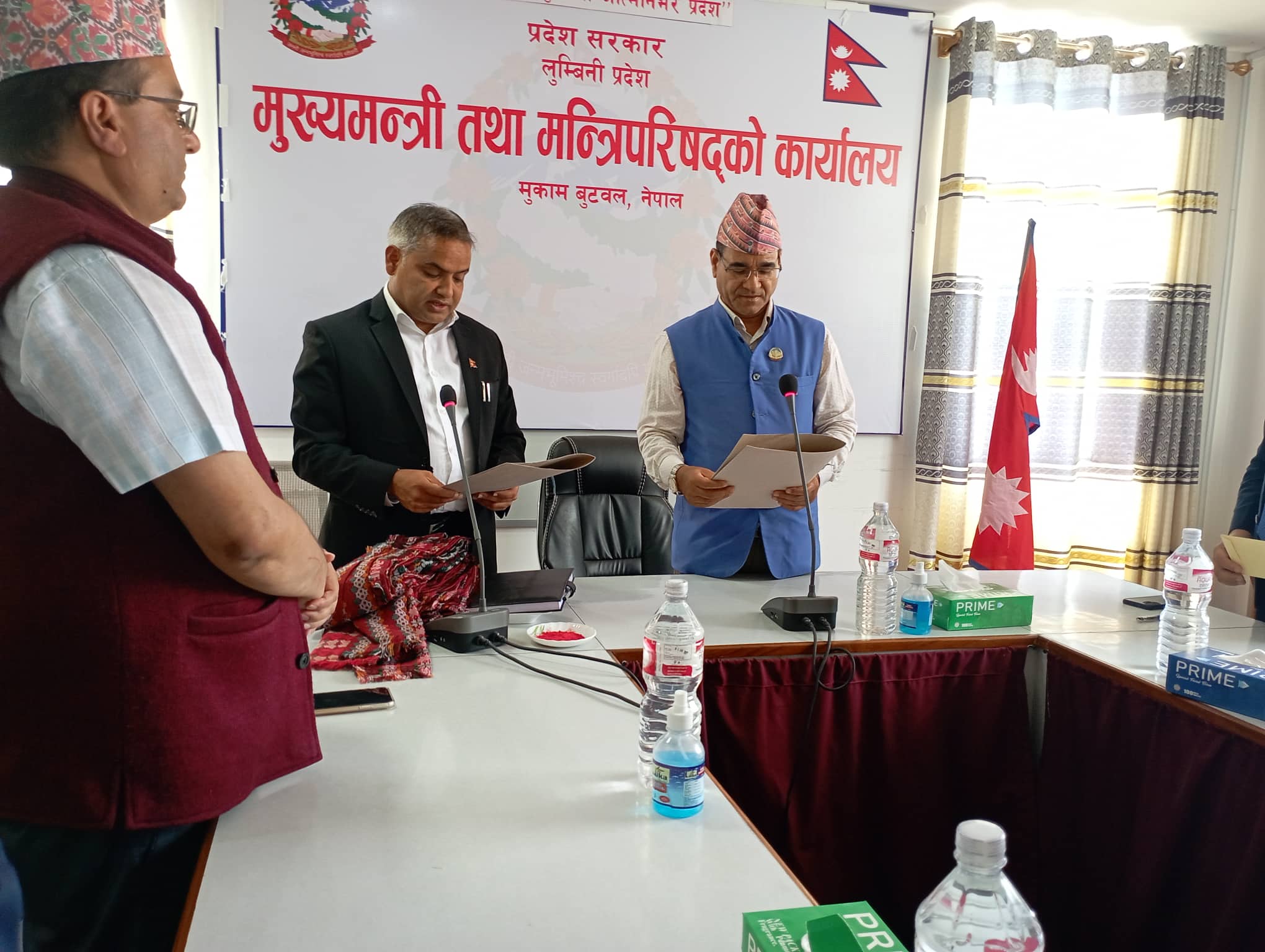 शपथग्रहण पछि निर्देशक पोखरेलले लुम्बिनी प्रदेश सरकारले दिएको जिम्मेवारी पूरा गर्न कुनै कसर बाँकी नराख्ने बताए ।