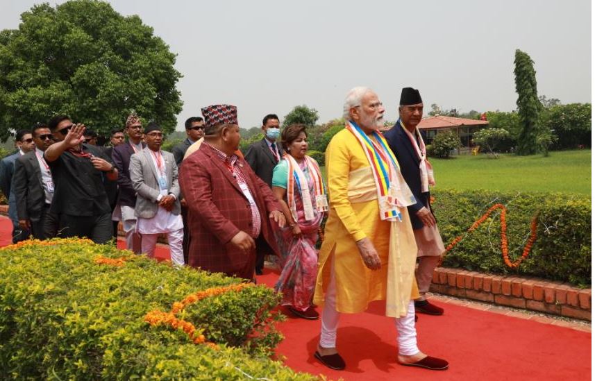 यहाँस्थित अन्तरराष्ट्रिय बौद्ध प्रार्थना केन्द्र तथा प्रेक्षालय नजिक निर्माण गरिएको हेलिप्याडमा प्रधानमन्त्री शेरबहादुर देउवाले भारतीय समकक्षी मोदीलाई हार्दिक बिदाइ गरे ।