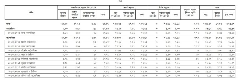 कुन पालिकालाई कति रकम तालिका हेर्नुहोस् : रु लाखमा