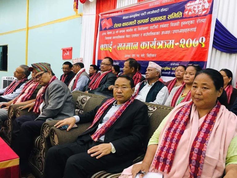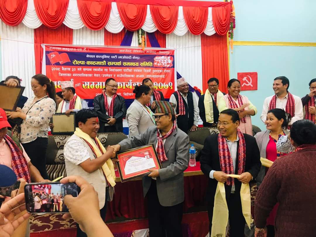 रोल्पा काठमाडौं सम्पर्क समन्वय समितिले रोल्पामा नेकपा माओवादीबाट निर्वाचित मेयर/उपमेयर, अध्यक्ष/उपाध्यक्षलाई सम्मान गरेको हो । रोल्पामा नेकपा माओवादी केन्द्रले रोल्पा नगरपालिकासहित ७ पालिकामा विजयी भएको थियो ।