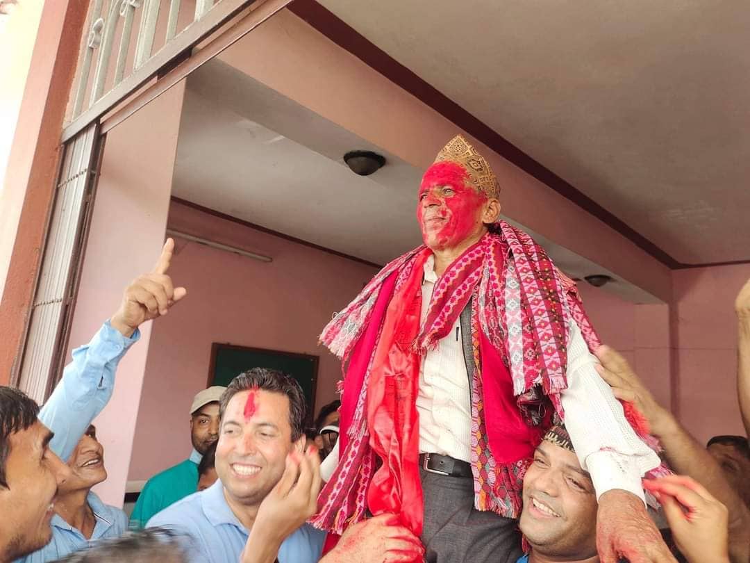 कांग्रेसका उम्मेदवार पूर्णबहादुर रानाभाटसंग बराबर ७ मत प्राप्त भएपछि एमालेका अधिकारी गोलाप्रथाबाट निर्वाचित भएका हुन् । जिसस उपप्रमुखमा नेकपा नेकपा (एकीकृत समाजवादी)की कल्पना काफ्ले सापकोटा निर्विरोध निर्वाचित भएकी छन् ।