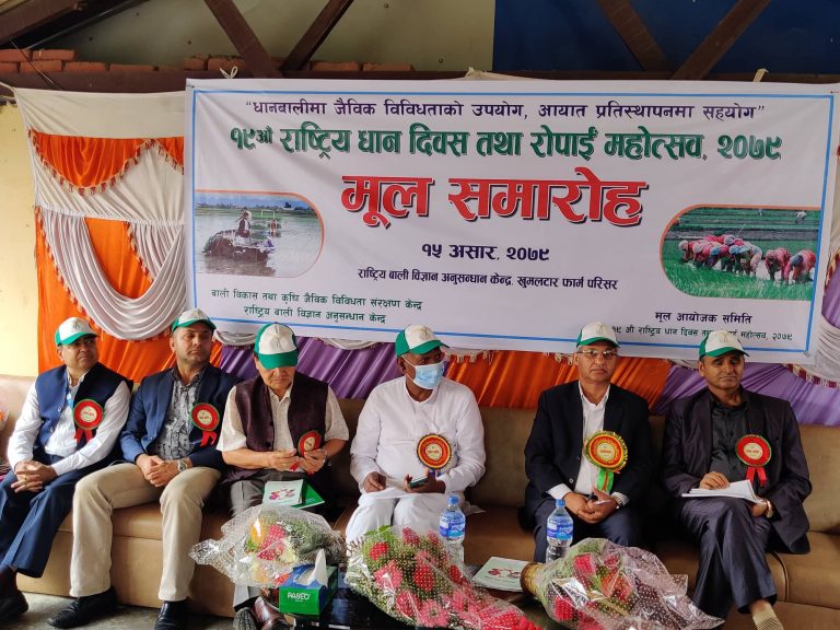 राष्ट्रिय धान दिवस तथा रोपाइँ महोत्सवमा कृषि तथा पशुपन्छी विकास मन्त्री महिन्द्र राय यादव, सचिव डा. गाेविन्द प्रसाद शर्मा, धान बाली विशेषज्ञ लगायतकाे सहभागिता रहेकाे थियाे
