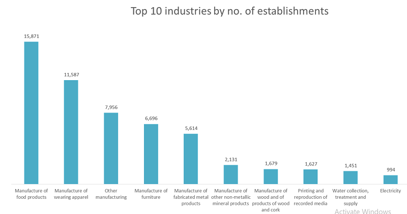 सबैभन्दा बढि रोजगार दिने पनि उत्पादन उद्योग रहेको छ । उत्पादनमुलक उद्योगमा ४ लाख ४४ हजार ९६४ जना आबद्ध छन् भने ३ लाख ४६ हजार १४३ जनाले रोजगार पाएका छन् । ३ लाख ४६ हजार १४३ जना बाहेर अरु आफन्त र प्रोपाइटर रहेको कारण अन्यको रोजगार गणना नगरेको तथ्यांक विभागले जनाएको छ ।
