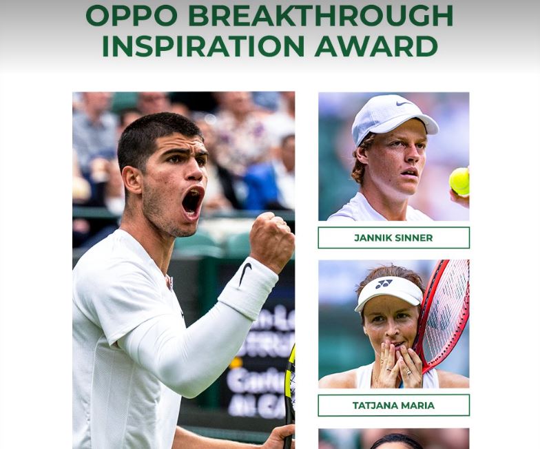 आज अनावरण गरिएको ओप्पो ब्रेकथ्रु प्रेरणा पुरस्कारको विजेता टेनिस खेलाडी कार्लोस अल्काराज बनेका हुन । द अल इङ्गल्याण्ड लङ टेनिस क्लब र ओप्पो लगातार चौथो वर्ष विम्बल्डनको ग्लोबल पार्टनरले पन्ध्र दिनमा खेलकुदको उत्कृष्टतालाई मान्यता दिएको थियो ।
