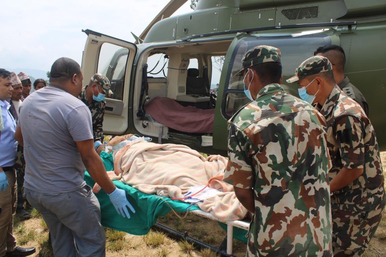 काठमाडाैं। नेपाली सेनाकाे हेलिकप्टरद्वारा एक सुत्केरी महिलाकाे उद्वार गरिएकाे छ । डोटी जिल्लाकाे सायल गाउँपालिका वडा नं. ६ निवासी २५ वर्षीया गर्भवती महिलाको पश्चिम एयर बेश सुर्खेतबाट नेपाली सेनाको हेलिकप्टरद्वारा उद्धार गरी सुर्खेत पुर्याईएको हाे ।