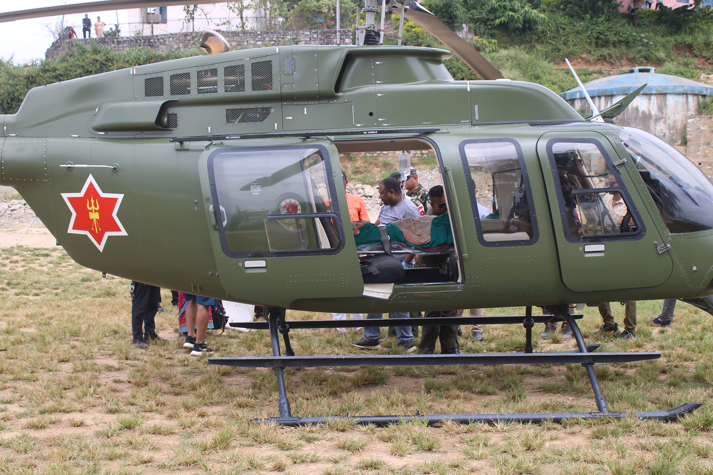 महिलाको जिल्ला अस्पतालमा जाँच गर्ने क्रममा पेटमा मृत बच्चा रहेको देखिएकाले शैल्यक्रिया मार्फत् मृत बच्चा बाहिर निकालेको र महिलाको पाठेघरमा अत्यधिक मात्रामा रगत जम्मा हुनको साथै स्वास्थ्य अवस्था गम्भीर देखिएकाले हेलिकप्टरबाट सुर्खेत पुर्याइएकाे नेपाली सेनाले जनाएकाे छ।
