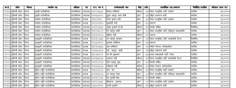 चुनावको खर्च विवरण नबुझाएर कारबाहीमा पर्ने राेल्पाका स्थानीय तहका अध्यक्ष र उपाध्यक्षका उम्मेदवार :