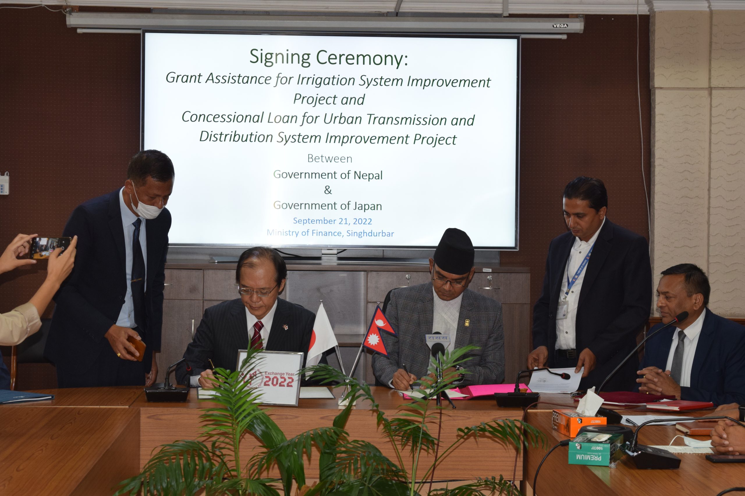 पूर्वी तराई क्षेत्रमा सिंचाइ प्रणालीको पुनर्स्थापना सुधार आयोजना कार्यान्वयन गर्न जापानी येन २२५।६० करोड करिब २ अर्ब अनुदान सहायता बराबरको सम्झौता भएको हो । सोही अवसरमा शहरी प्रसारण तथा वितरण प्रणाली सुधार आयोजना कार्यान्वयनका लागि जापानी येन १५९।०१ करोड (करिब रु १४।२ अर्ब) बराबरको सहुलियतपूर्ण ऋण सहायता उपयोग गर्ने सम्बन्धी सम्झौता पत्रमा हस्ताक्षर भएको छ ।