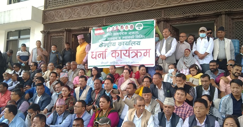 कांग्रेसभित्र टिकट बाँडफाँडमा किचलो, शेखर पक्षद्वारा केन्द्रीय कार्यालयमा धर्ना