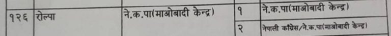 रोल्पामा माओवादी केन्द्रले संघ र प्रदेश सबैमा दाबी गरेको छ भने नेपाली कांग्रेसले प्रदेश सभा (ख) मा दाबी गरेको छ । सहमति हुन नसकेपछि केन्द्रले रोल्पाको प्रदेश सभा (ख) का लागि माओवादी केन्द्र र नेपाली कांग्रेस दुबैको नाम राखेको छ ।