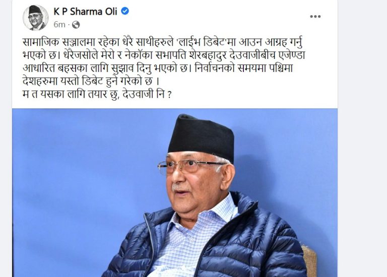 एमाले अध्यक्ष ओलीद्वारा ‘लाइभ डिबेट’ का लागि प्रधानमन्त्री देउवालाई चुनौती