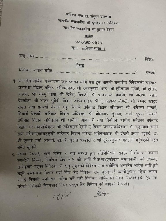 रूपन्देही–२ मा गठबन्धनलाई धक्का, उम्मेदवार गुरुङको उम्मेदवारी खारेज गर्ने निर्णय सर्वोच्चद्वारा सदर