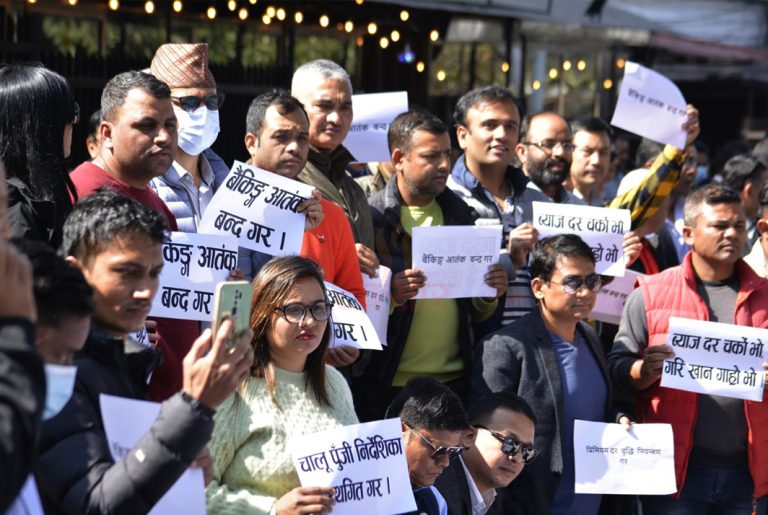 ब्याजदर वृद्धिकाे विराेधमा प्रदर्शनमा बैंकरदेखि कृषि उद्यमीसम्म (फाेटाेफिचर)