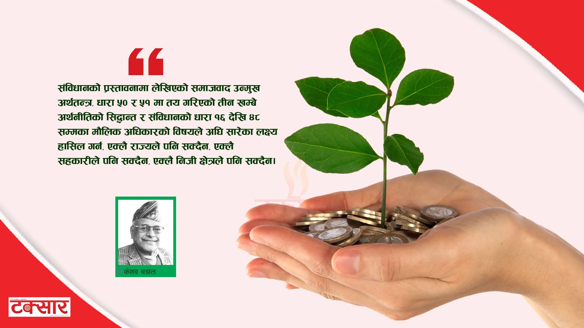 वर्तमान अवस्थामा स्वतन्त्र व्यापारमा निजी क्षेत्रको बाहुल्य, बाह्य क्षेत्रको सहायता र ऋणमा आधारित सार्वजनिक, लगानीका लागि बाह्य पुँजीमाथिको निर्भरता, अर्थतन्त्रमा राज्यका अत्यन्त कमजोर उपस्थिति सहकारी क्षेत्रको प्रारम्भिक अवस्थाको उपस्थिति छ । यो स्थिति यथावत रहेर समाजवादतर्फको यात्रा सफल हुन सक्दैन । त्यसका लागि हाम्रा सोचाइको आधारका केही महत्वपूर्ण नीतिगत, कानुनी र व्यावहारिक परिवर्तन आवश्यक भएको कुरा नेपालको संविधान, २०७२ ले निर्देशित गरेको छ । त्यो नै तीन खम्बे अर्थनीति हो ।