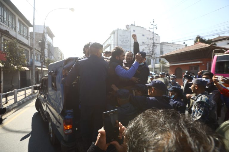 निर्वाचन आयोगको कार्यालय बाहिर प्रर्दशन गर्ने नेकपा (माओवादी क्रान्तिकारी)का कार्यकर्ता पक्राउ