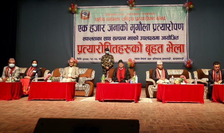 शुक्रबार बिहान प्रज्ञा भवन कमलादीमा शहीद धर्मभक्त राष्ट्रिय प्रत्यारोपण केन्द्रले १ हजार वटा मिर्गौला प्रत्यारोपण सम्पन्न गरेको उपलक्ष्यमा आयोजित विशेष कार्यक्रमलाई सम्बोधन गर्दै प्रधानमन्त्रीले भने, ‘’मेरो मृत्युपश्चात् सम्पूर्ण शरीर दान गर्ने घोषणा गर्दछु ।’’