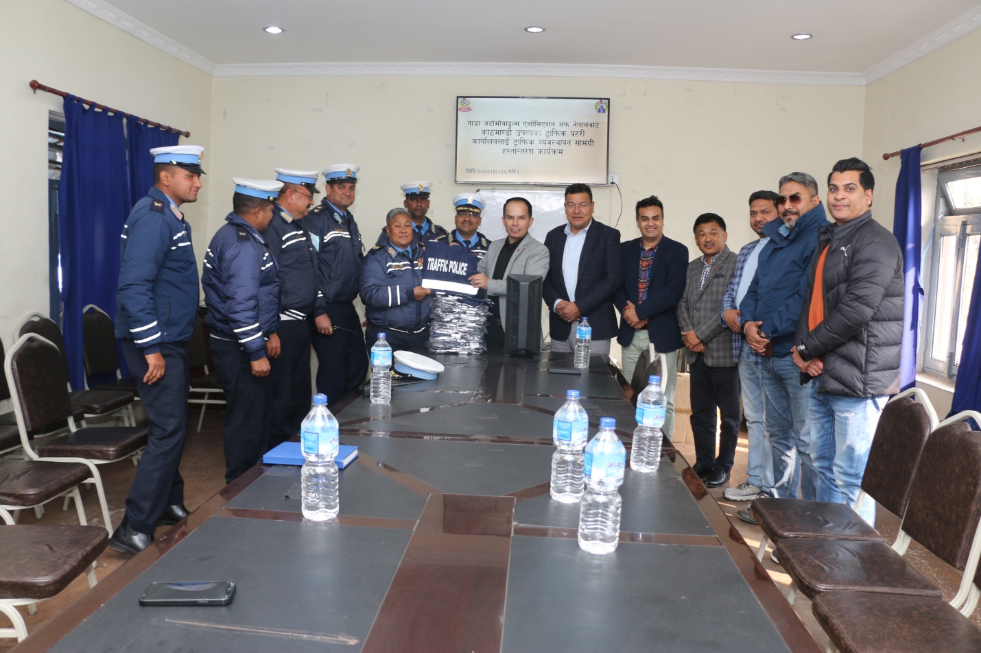 ट्राफिक व्यवस्थापनको लागि आवश्यक पर्ने १ सय थान फ्लोरोसेन्ट ज्याकेट तथा सिसी टिभी मोनिटरिङलाई थप प्रभावकारी रुपमा सन्चालन गर्न ५ थान कम्युटरको सिपियू, ५ थान किबोर्ड र ५ थान माउस हस्तान्तरण गरिएको हो ।
