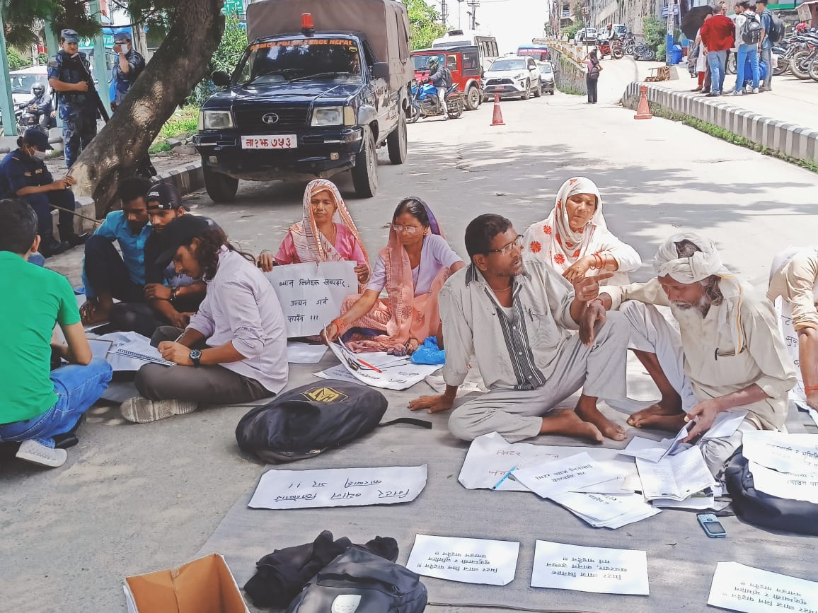 सोमबार काठमाडौँमा आएका मिटिरब्याजी पीडितहरूले मिटरब्याजबिरुद्ध अदालतमा दायर गरेका मुद्दा खारेज गर्नुपर्ने लगायतका विभिन्न माग राखेका छन् । मिटरब्याज तथा ठगी बिरुद्ध किसान–मजदुर मोर्चा लेखिएको ब्यानरमा आवद्ध भएर पीडितहरूले किसानको भूमि फिर्ता गर,फर्जि तमसुकका आधारमा भूमि लिलामी बन्द गर,मिटर ब्याजीलाई कारबाही गर, झुटा आश्वाशन बन्द गर,उत्पिडित किसान एक हौं नारा समेत लगाएका छन् ।