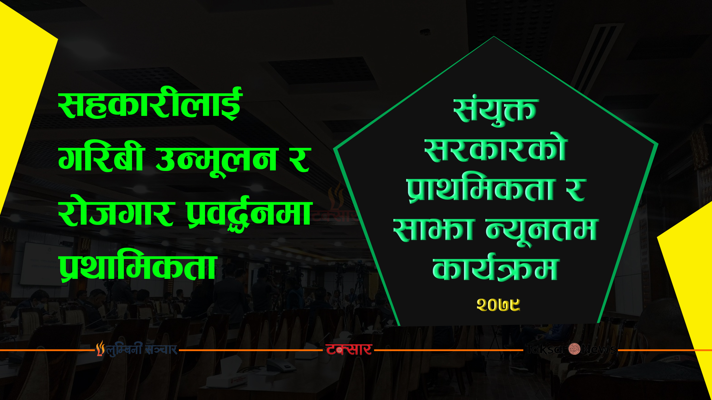 काठमाडौँ । सरकारले सहकारी क्षेत्रलाई गरिबी उन्मूलन र रोजगार प्रवद्र्धनको क्षेत्रको रूपमा प्रथमिकता दिने भएको छ ।
