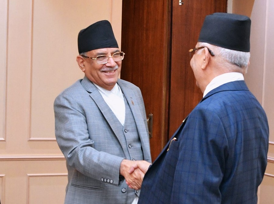 काठमाडौँ । प्रधानमन्त्री पुष्पकमल दाहाल ‘प्रचण्ड’ र एमाले अध्यक्ष केपी शर्मा ओलीबीच भेटवार्ता भएको छ ।
