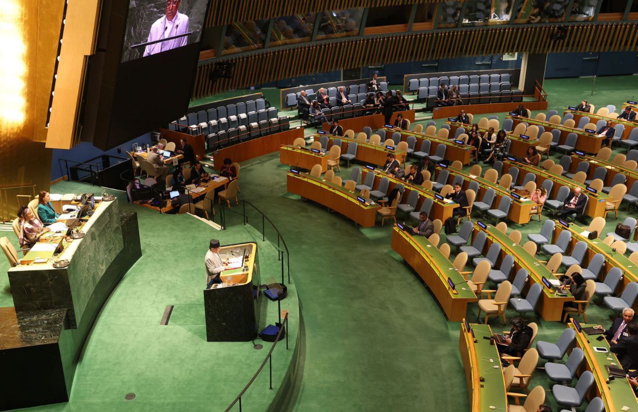 अमेरिकाको न्यूयोर्कमा जारी संयुक्त राष्ट्रसङ्घको ७८औँ महासभालाई नेपालको तर्फबाट सम्बोधन गर्दै उनले शान्ति प्रक्रियालाई तार्किक निष्कर्षमा पुर्याउन लागिपरेको विश्व समुदायलाई जानकारी गराए ।