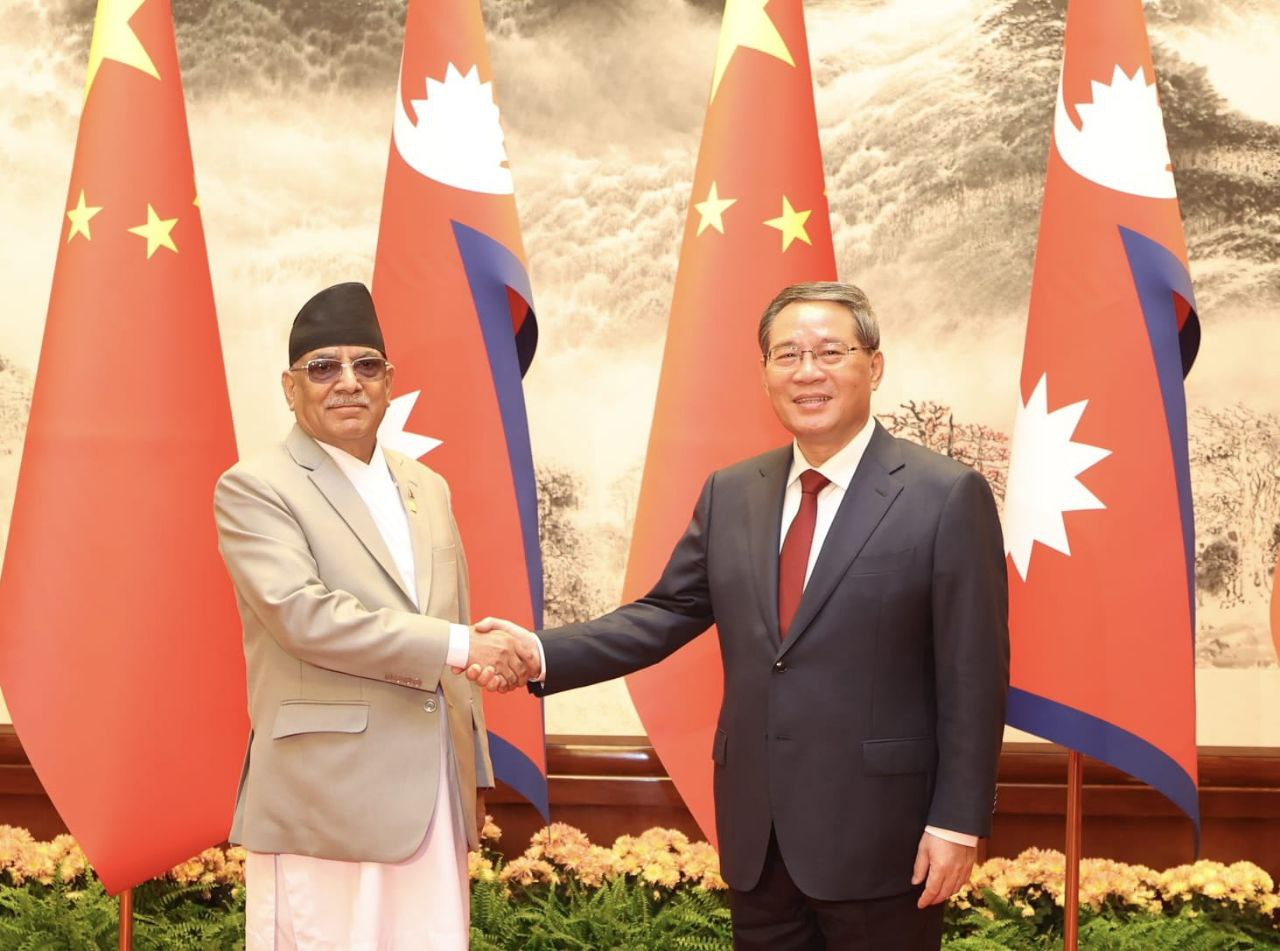 सोमबार बिहान बेइजिङस्थित ग्रेट हल अफ द पिपुलमा प्रधानमन्त्री पुष्पकमल दाहाल प्रचण्ड र चिनियाँ समकक्षी प्रधानमन्त्री लि छ्याङको उपस्थितिमा १३ बुँदे सम्झौतामा हस्ताक्षर भएको प्रधानमन्त्रीका प्रेस विज्ञ मनोहरी तिमिल्सिनाले जानकारी दिए ।